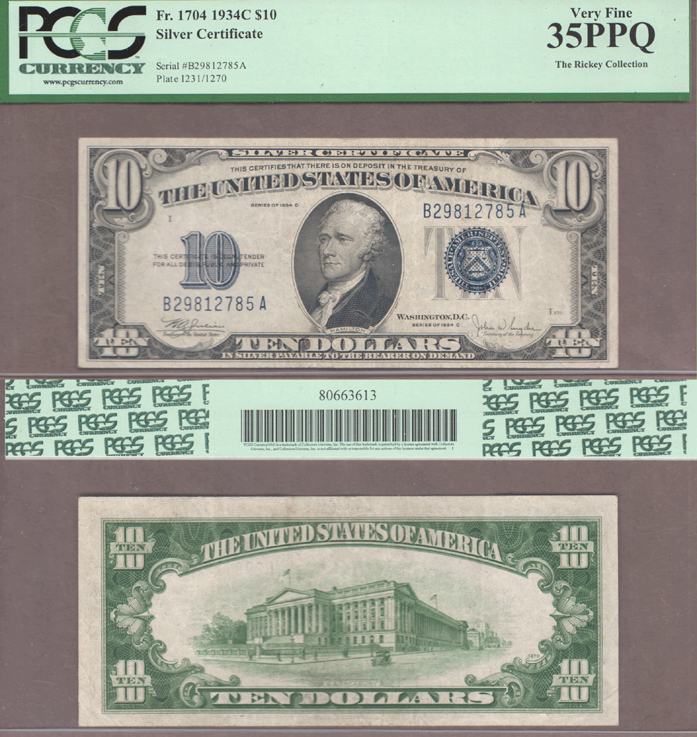 Item Number: SSC-295 PCGS Choice Very Fine 35 PPQ - FR-1704 Julian/Snyder - Well centered note from the Rickey Collection with PPQ Premium Paper Quality.$90.00