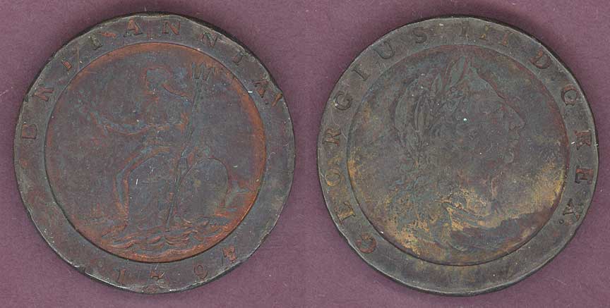 Item Number: GB-73 Very Fine+ 2 Pence #619 Copper Large thick and heavy. Hugh copper coin weighs almost 2 ounce and measures over 40 MM by 5 MM thick. Still has a touch of red around the inner rim.$145.00
