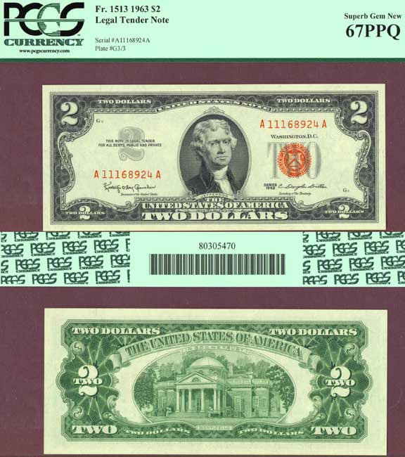 Item Number: SLTN-57 PCGS Superb Gem New 67PPQ - Beautiful note with Premium Paper Quality that would be hard to improve. Top grade GEM for a Top grade set. Granahan/Dillon FR-1513$125.00