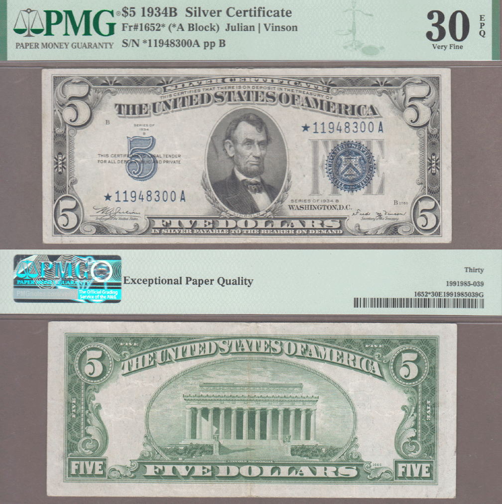 Item Number: SSC-276 PMG Very Fine 30 EPQ - FR-1652* Julian/Vinson - Tougher to find STAR note with Exceptional Paper Quality "EPQ"$210.00