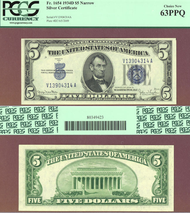Item Number: SSC-130 PCGS Choice New 63 PPQ - The Narrow face variety with Premium Paper Quality. Clark/Snyder FR-1654$75.00