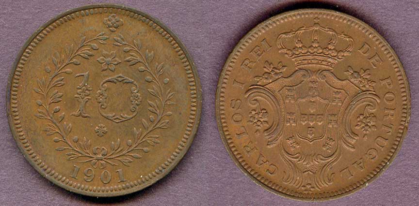 Item Number: AZ-23 Uncirculated - 10 Reis KM-17 Copper. Carlos I Original high grade uncleaned One Year Type Coin$35.00