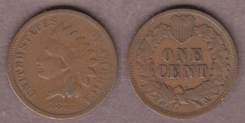 1875 1c US Indian head cent
