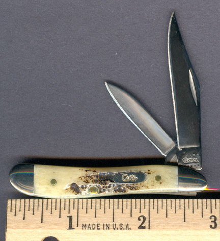 CA-68 This is the popular 2-7/8” Peanut style with clip and pen blades. It has a Hand Jigged Vintage Bone Handle with Case inlay shield. Not only is this a quality knife, it is also new, in the box, with Case info insert and wrapped in the original brown paper. This knife is for the collector who wants the best quality mint condition knife he can find. Case made in the USA by American Craftsmen!