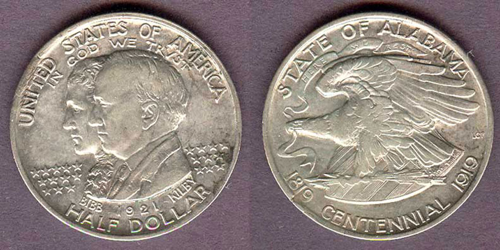 CHD-80 Extremely Fine - Alabama Centennial Half Dollar- This commemorative was made to celebrate the 100th anniversary of the admission of Alabama to the Union. The obverse has bust of W.W. Bibb, first governor and T. E. Kirby governor at the time of the centennial. Low mintage of only 16,014
