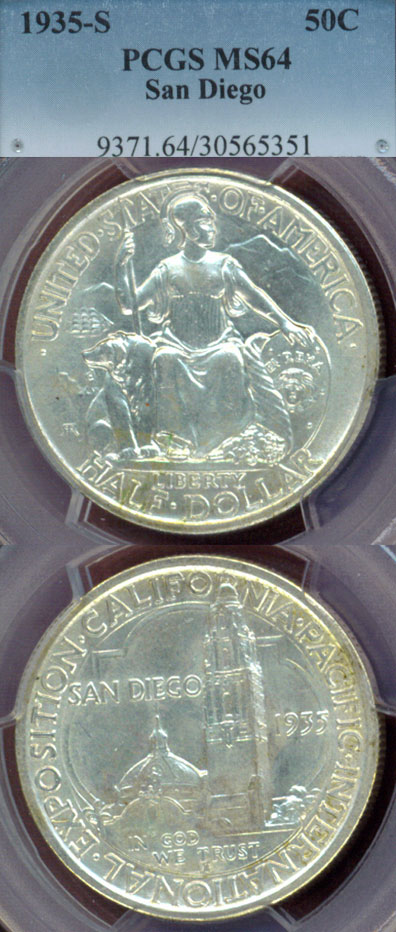 Item Number: CHD-138 PCGS MS-64 - California Pacific International Exposition Half Dollar - The obverse has a seated female with spear and bear at left. The reverse is the observation tower and the State of California building at the exposition. Mintage of 70,132$150.00