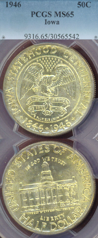 Item Number: CHD-144 PCGS Mint State 65 - Lustrous surfaces with a light golden tone. Commemorating the 100th anniversary of Iowa's statehood. Mintage of 100,057$150.00