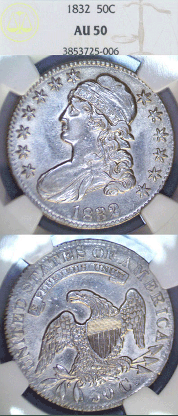 Item Number: EHD-104. NGC About Uncirculated 50 - Overton-112 Dash at date (Not on Holder) Great luster with very light wear. Mintage for all varieties 4,797,000$450.00