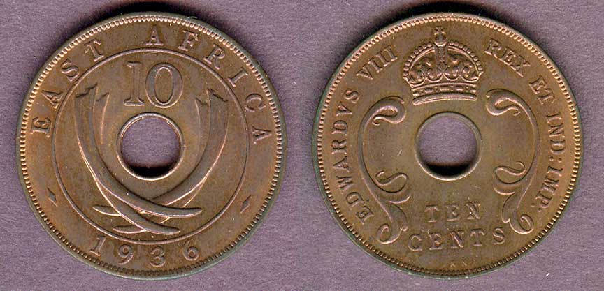 Uncirculated 1936-KN - 10 Cents KM-24 Bronze Larger than a US 50c.