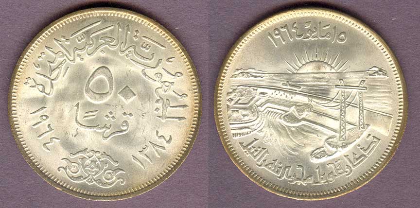 Item Number: Egypt-29 Uncirculated - 50 Piastres KM-407 .720 Silver. Nile river basin scene. Large silver dollar size.$45.00