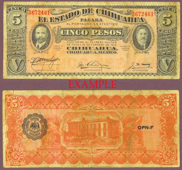 Item Number: MXR-44E Fine or Better - #S532 Large Note. Front Has portrait of F. I. Madero at left and Gov. A. Gonzalez at right with red serial numbers. Back is red with black scalloped seal at left.$7.00