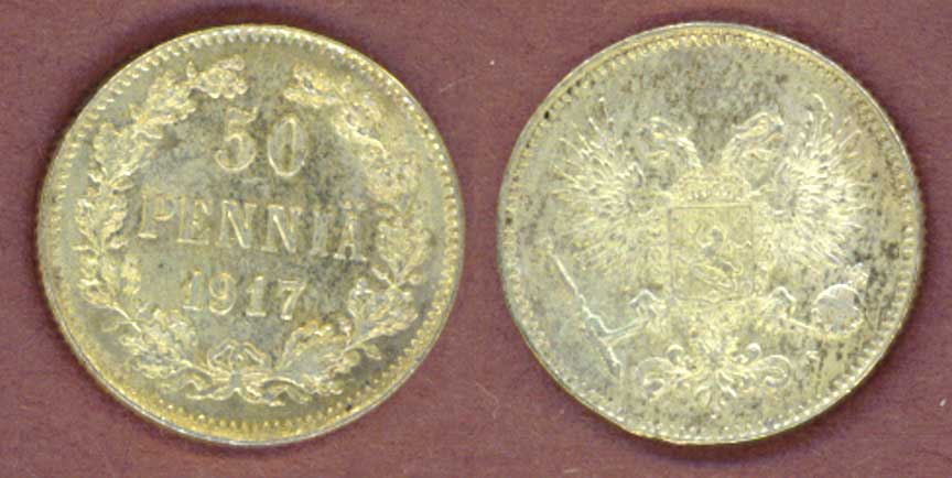 Item Number: Fin-25 Uncirculated - 50 Pennia KM-20 .750 Silver. Civil War Issue made only one year.$35.00