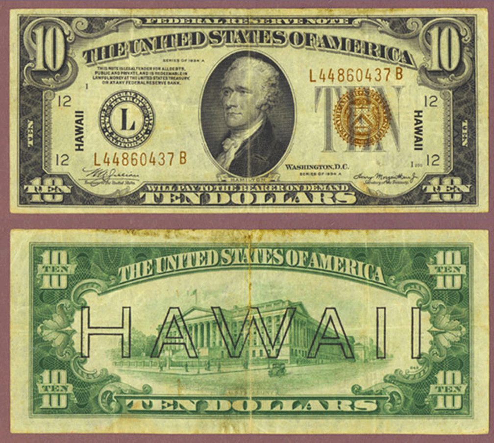 Item Number: SGN-34. Very Fine - FR-2303 Julian/Morgenthau - Emergency currency issue for Pearl Harbor after the attack by Japan. $95.00