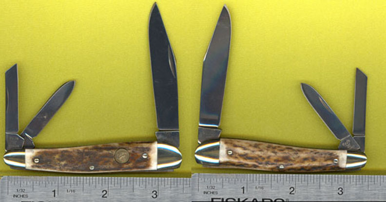 HR-27 From the internationally trusted brand of Hen and Rooster knives that is known as the “World’s finest since 1845,” comes this beautiful Whittler style knife in Mint condition! This three blade knife is a very popular pick among collectors with its Genuine Stag handle and stainless steel blades! The knife also features the trademark Hen and Rooster crest on the shield and a tang that is engraved with its location of manufacture, “Solingen Germany,” the town famous for quality knife making!