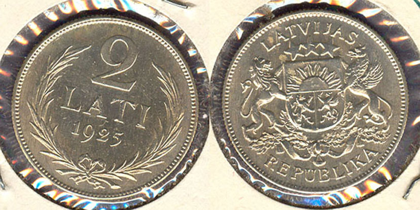 Extremely Fine+ 2 Lats #7 .835 Silver. Shield with Lions made in 1924 and 1925 only.