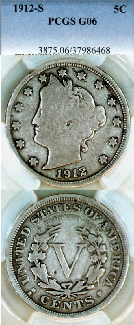 Item Number: LN-206-CC PCGS Good 6 - Attractive no problem example of this low mintage V nickel. Mintage of only 238,000$150.00