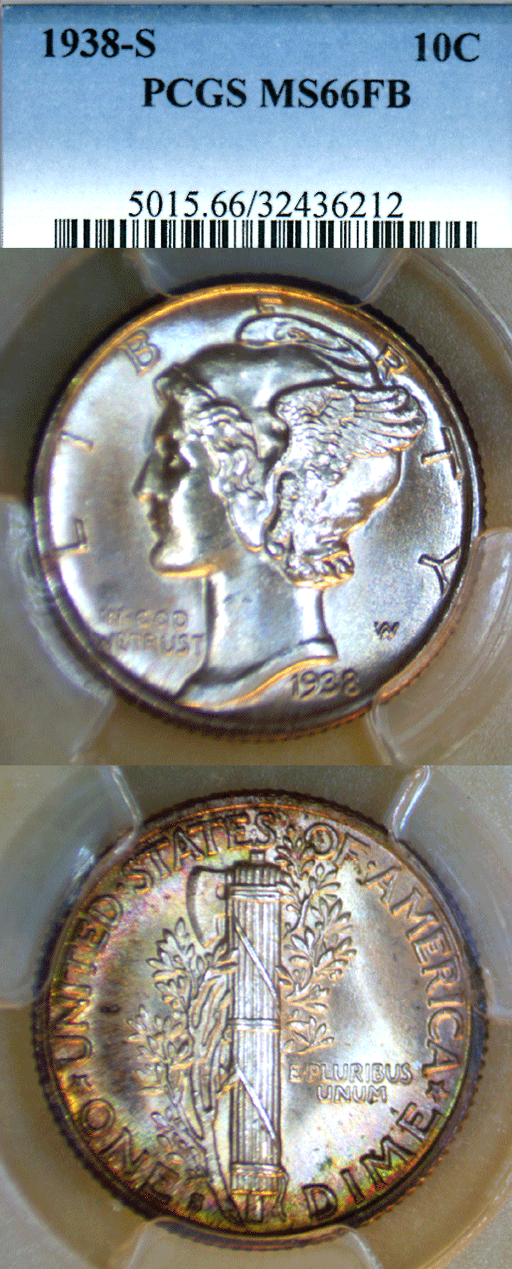 Item Number: D-623CC PCGS Mint State-66 FB - Beautiful high grade GEM+ with Full Split Bands. Original unmolested surfaces with exceptional luster and a touch of color on the reverse. $395.00