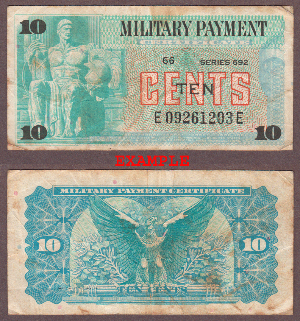 Item Number: MPC-171E Very Good or Better - Issued October 7, 1970 Withdrawn March 15, 1973 - Front is blue/green with multicolored underprint. Back is blue.$10.00