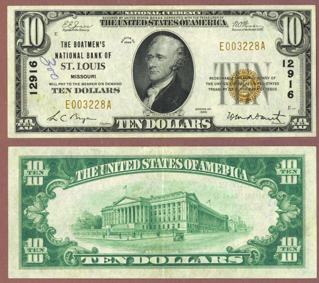 Item Number: SNBN-50 Very Fine - FR-1801-1 The Boatmen's National Bank of St. Louis - Charter 12916. Nice VF with 300 in ink on face of note .$95.00