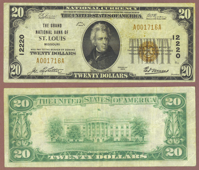 Item Number: SNBN-88 Fine/Very Fine - FR-1802-1 The Grand National Bank in St. Louis - Charter #12220. Original note with good paper quality. Two small pin holes.$120.00