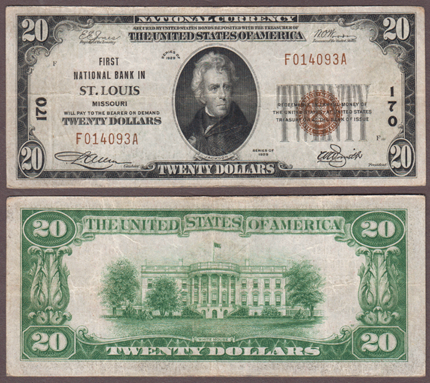 Item Number: SNBN-165 Very Fine - FR-1802-1 First National Bank in St. Louis - Charter 170. Attractive well centered note.$110.00