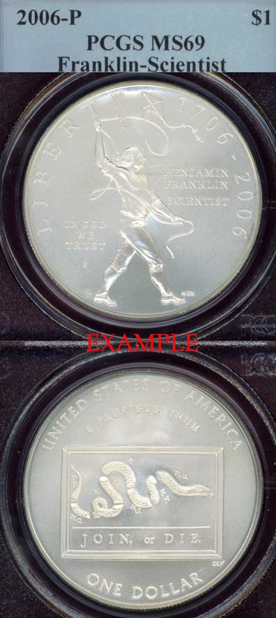 Item Number: MC-48E PCGS MS 69 - Franklin Scientist - .900 Fine Silver - Beautiful near perfect Franklin commemorative dollar.$40.00