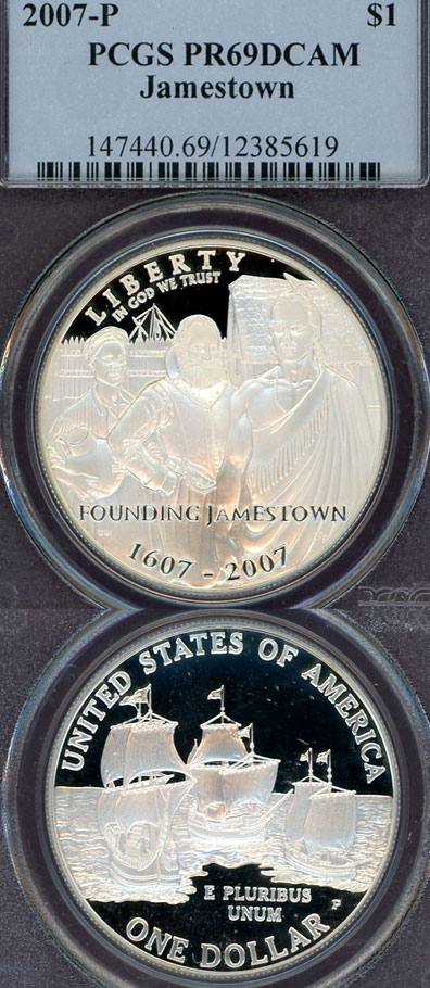 Item Number: MC-60 PCGS PROOF 69 DCAM - Jamestown 400th Anniversary - .900 Fine Silver - 1607-2007 400th Anniversary of Jamestown.$40.00