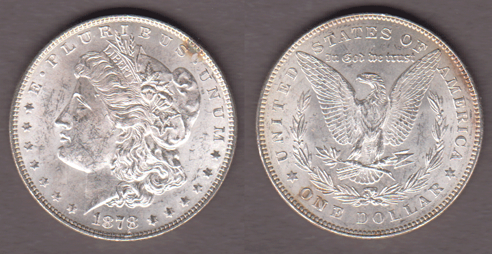 Item Number: MD-1524 Mint State 60+ Frosty original surfaces with nice mint luster. First year of the Morgan Dollar - Flat Breast variety. Breen estimates mintage at 4,900,000$150.00