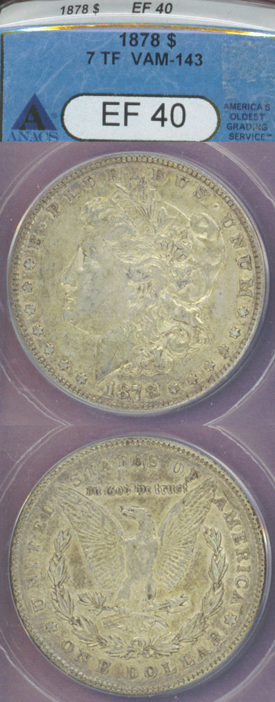 Item Number: MD-1344 ANACS Extremely Fine 40 - First year of the Morgan Dollar - VAM-143 - Flat Breast variety. Breen estimates mintage at 4,900,000 for all varieties$80.00