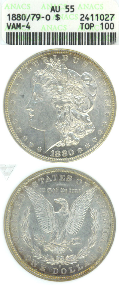 Item Number: MD-1415 ANACS About Uncirculated 55 - This is a Top-100 Vam 4 - This VAM has the 80 repunched over 79 with the Micro "O" mint mark. Light even wear with nice luster remaining. $125.00