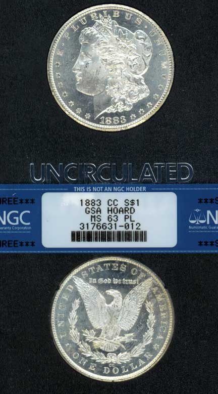 Item Number: MD-1151 1883-CC GSA Morgan Dollar NGC MS-63 PL (Prooflike) With GSA Box and paper certificate. Very flashy PL.$595.00