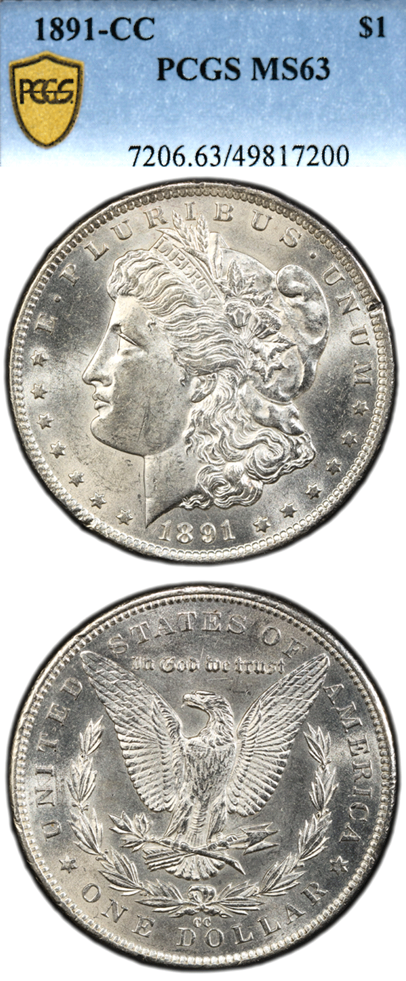 Item Number: MD-1676 PCGS Mint State 63 - White surfaces and great mint luster. This is also the popular TOP 100 Vam-3 Variety "Spitting Eagle". Mintage of only 1,618,000$1,175.00