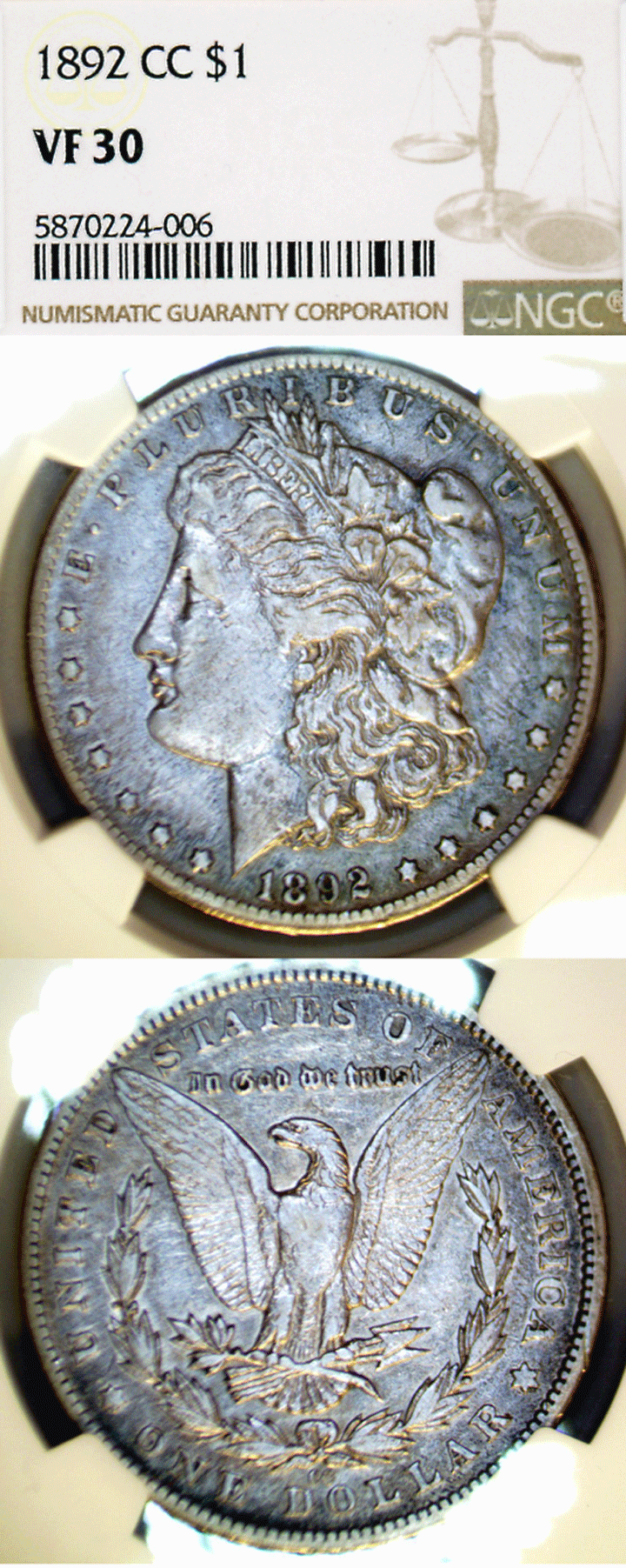 1892-CC $ US Carson City Mint silver dollar NGC Very Fine 30