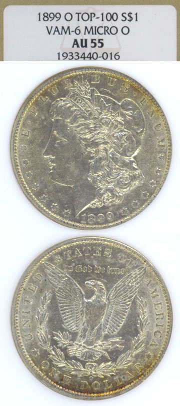 Item Number: MD-1278-CC NGC About Uncirculated 55 - VAM-6 Micro O TOP 100 VAM. Extremely Scarce in Uncirculated condition NGC has graded only 5 VAM-6 in mint state. Very hard to find in higher grades. This example is original and uncleaned.$395.00