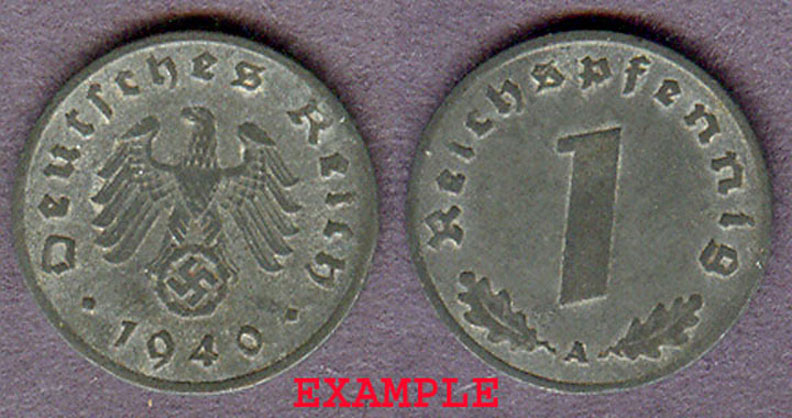 Fine or Better - #97 - 1 Reichspenning Zinc Various Mints with Eagle on Swastika. About the size of a US dime.