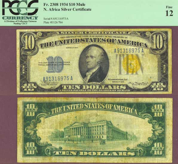 1934 $10 FR-2308 MULE! North Africa