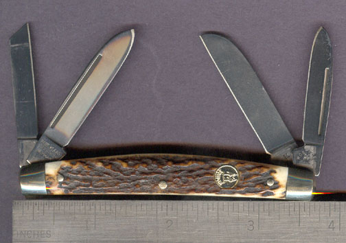 KC-26 This classic Congress style knife is a must have for any collection. The rugged Genuine Stag handle shows the great craftsmanship that goes into this great knife. The quality of this knife is unmatched due to the fact that it is a prized brand name of Kissing Crane from the internationally known town of Solingen, Germany. The inlay shield is the recognizable kissing crane crest. With its quality stainless steal blades, sought after style and handle, and perfect Mint condition, you can’t pass this one up!