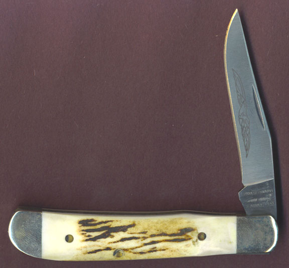 Item Number: PE-7 PARKER EDWARDS With a Genuine Winter Stag handle, you just can’t go wrong. That one blade is finely and decoratively etched with an eagle, displaying that this is an “Eagle Brand” knife known for quality and durability.$70.00