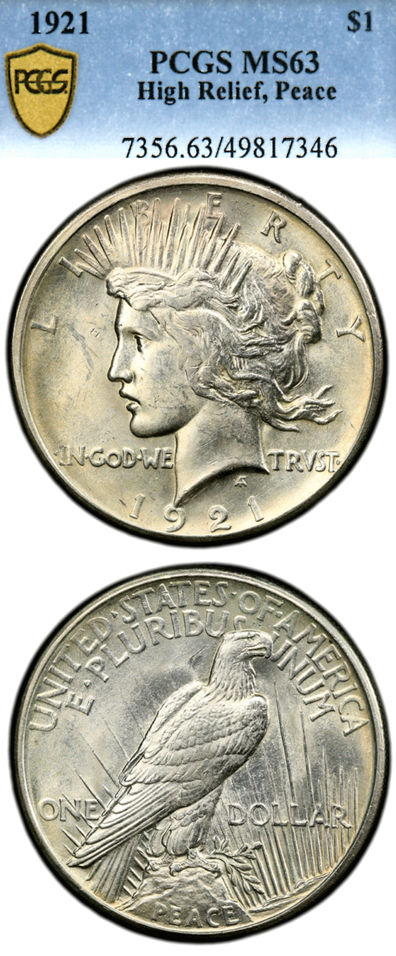 Item Number: PD-248 PCGS Mint State 63 High Relief - Well struck with Flashy/Frosty near white surfaces. First Year Type Coin. Mintage of only 1,006,473$1,000.00
