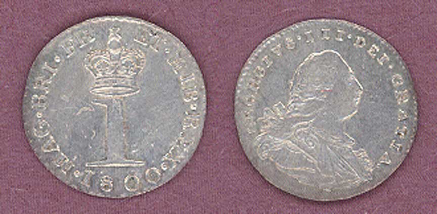 Item Number: GB-65 Almost Uncirculated - 1 Penny - Sterling Silver #614 Head of George III Very small silver coin approx. 12 MM. High grade with no problems.$45.00
