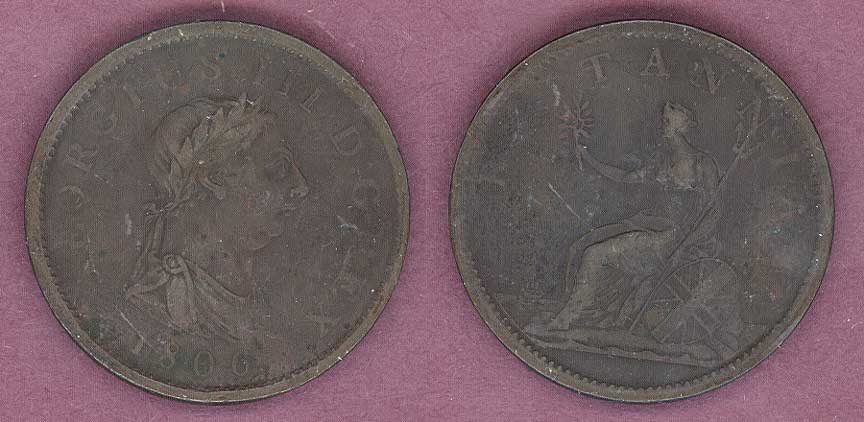 Item Number: GB-80 Extremely Fine - Penny - Copper #662 Head of George III. Original uncleaned and high grade copper. First year for this Type of Penny. Large size copper almost as large as a silver dollar.$80.00