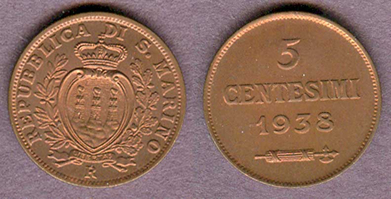 Uncirculated - 5 Centesimi KM#12 Bronze Rome Mint. Nice mint luster. Only 200,000 made