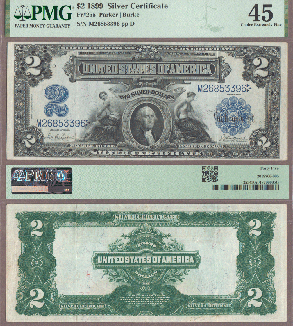 Item Number: LSC-112 PMG Choice Extremely Fine 45 - FR-255 Parker/Burke - Original bright, clean well centered Deuce with great color contrast. Portrait of Washington between figures of Mechanics and Agriculture at center . $975.00