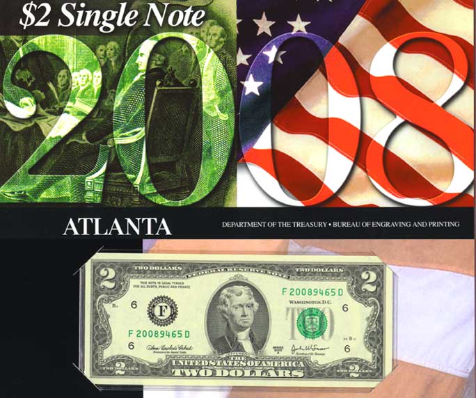 GEM Uncirculated - Special serial numbers starting with 2008XXXXD in BEP folder. Serial # 20089465D from the "F" Atlanta District. Made in Fort Worth.