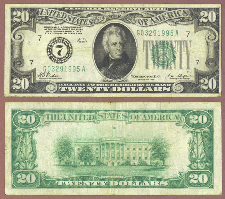 Item Number: SFRN-201 Very Fine - Early small size Federal Reserve note with numerals in federal reserve seal. Chicago District Tate/Mellon FR-2050-G$60.00