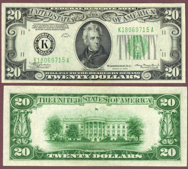 Item Number: SFRN-134 Crisp Uncirculated - Dark Green Seal Mule. Nice centering on this CU note. Back check #465 Dallas District Julian/Morgenthau FR-2054-K Serial # K18069715A$75.00