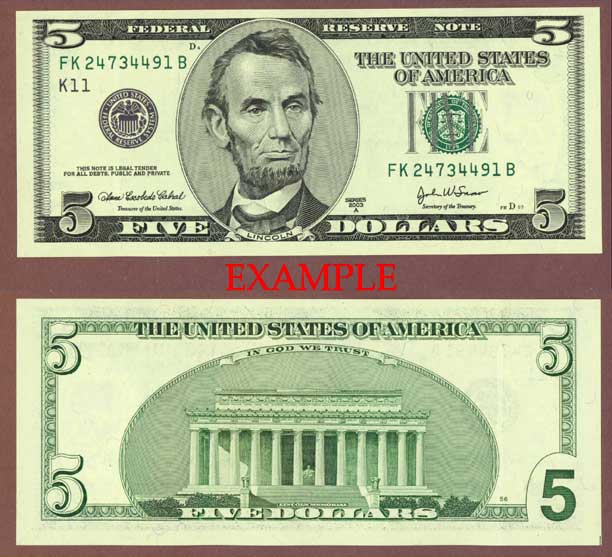 Small Size Federal Reserve Notes - $5.00