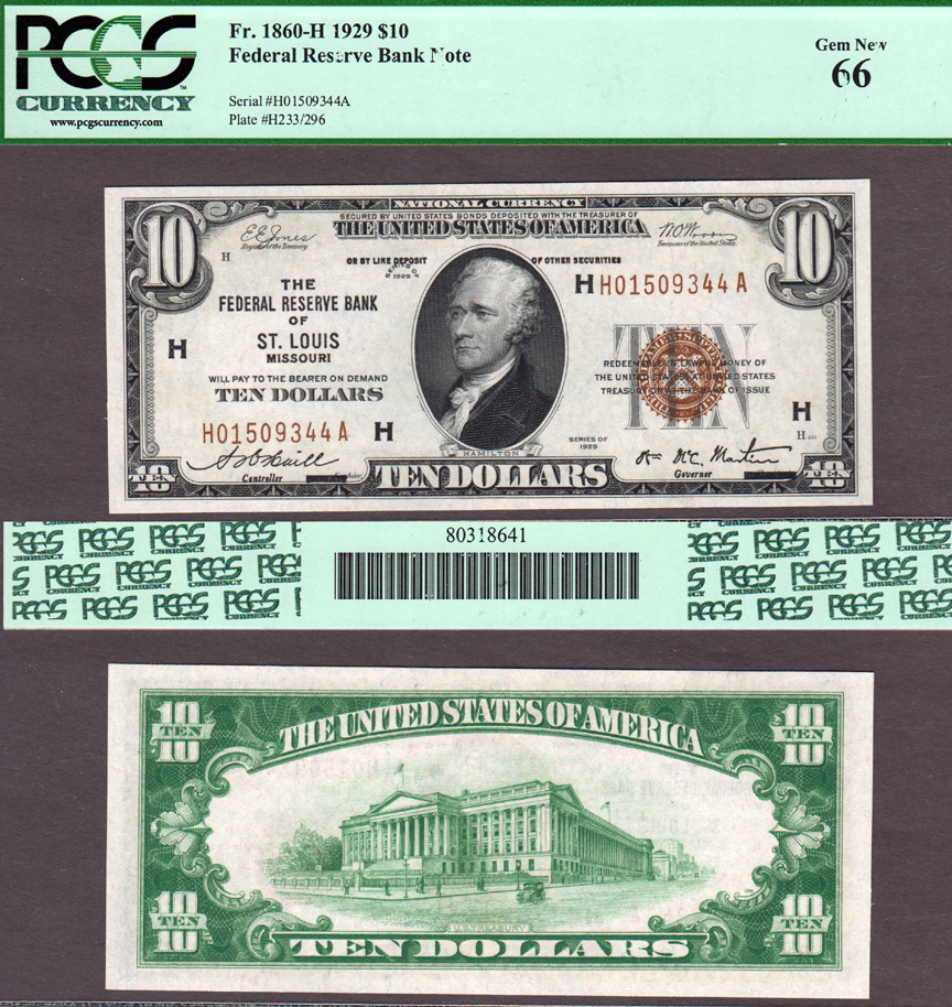 Item Number: SFRBN-110 PCGS Choice GEM NEW 66 - FR-1860-H - Exceptional GEM++ I believe this note was graded before PCGS started using the PPQ designation. From the St. Louis district. $575.00