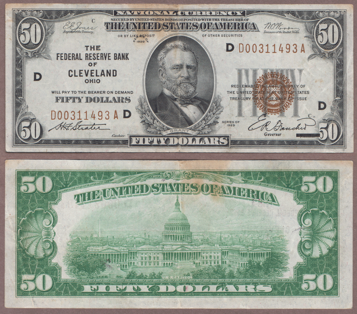 Very Fine - FR-1880-D Cleveland "D" District. Light stain upper edge.