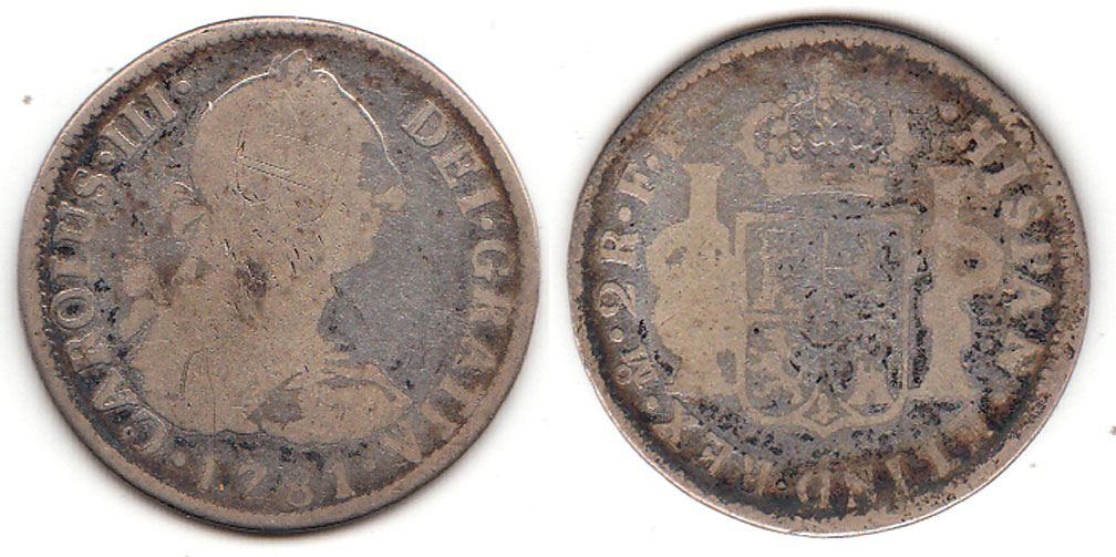 Item Number: MX-220 Good - MO/FF #88.2 - .9030 Silver Approximately 28 MM. Ruler - Charles III Mexico City Mint.$45.00